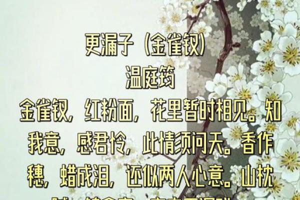 钗头凤,这一古老而优美的词牌,蕴含着丰富的文化内涵和深刻的命理意义。其名源于一种古代女性佩戴的钗子,头部如凤。正因其独特的形式与优雅的韵律,钗头凤成为了众多文人墨客吟唱的对象。本文将探讨钗头凤的命理寓意和其在古代文学中的深刻展现。