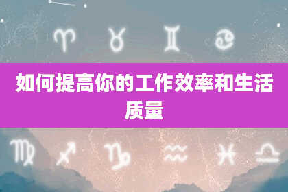 如何提高你的工作效率和生活质量